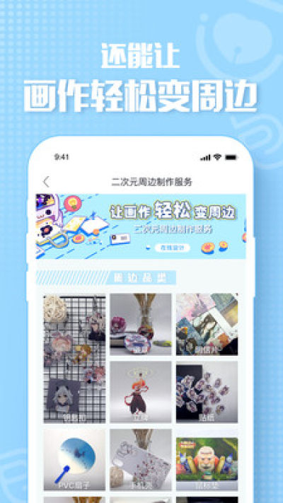 除了绘画之外,画包包也提供周边制作服务,画师太太们发布作品、参加活动还有机会获得免费制作周边的福利哦