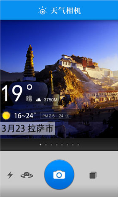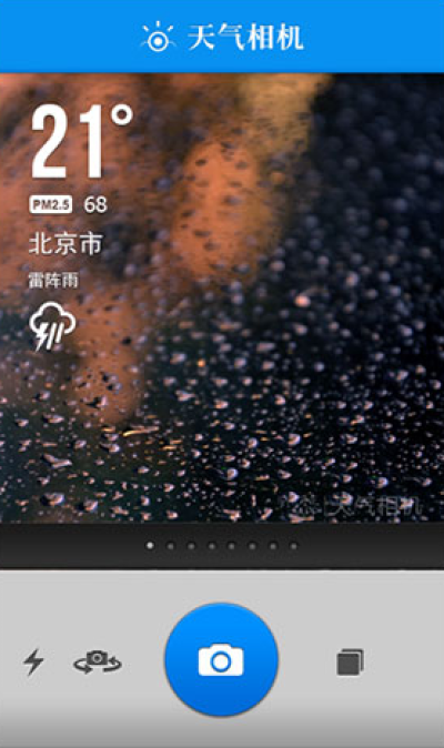 天气相机是一款针对android平台而开发的安卓手机相机软件,其最大的特点是:只要轻轻按下拍照按钮,即可出现当地实时和未来天气预报、空气质量指数、海拔高度、温度计等信息,用户还可以选择不同的模版来拍摄出不同风格的天气相片,并且还可以从本地相册选择你喜欢的图片来进行DIY你的天气相片。