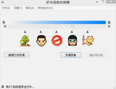 虾米变声器是一款虾米软件工作室推出的声音变声器,可以把用户原本的声音转成其他的声音,分别有各种不同的声音语言,不再是单调的男女变声器了,可以用在QQ,Skype,YY,雅虎通等通讯软件上,可以在通话中实时改变自己的声音