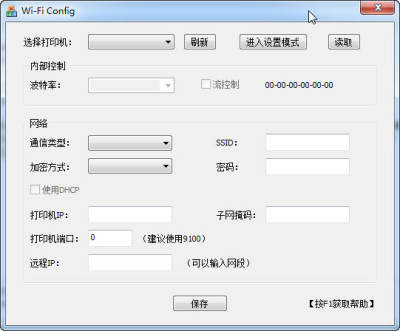 用USB电缆连接打印机和计算机,打开打印机和计算机电源,运行WiFiConfig软件。