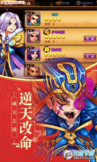 《逆天道》神将百抽版是一款Q版萌系动作卡牌扮演类手机游戏。游戏以古代三国时期为背景,再现乱世烽火,玩家需扮演一方诸侯,招募各路三国武将谋士,排兵布阵尽显华丽阵容。全新七星坛上线,每日登陆即送100个神将召唤令,超爽百连抽,累计两百抽,必出顶级神将。快来招募心仪的武将,一起征战沙场,过关斩将,成就三国霸业!