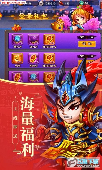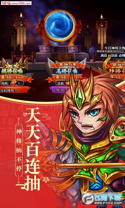 3.每日登陆礼包送100神将召唤令,每日百连抽,200抽必出神将!