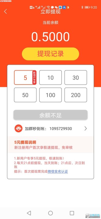 首次5元提现,之后永久10元起提现,支持提现到微信钱包,提现24小时内到账
