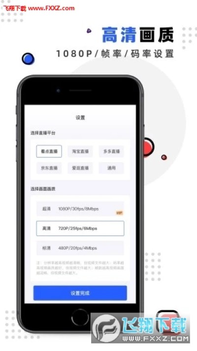 「高质量推流」支持高分辨率推流1080P,12Mbps,高码率60FPS