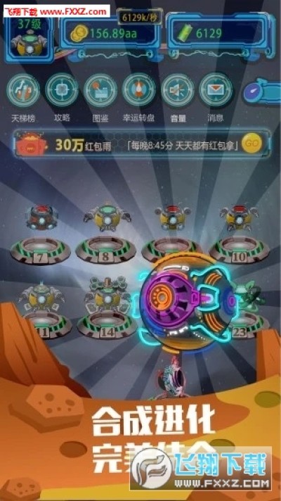 1、通过合成升级星球赚钱,每升5级可获得一个现金红包