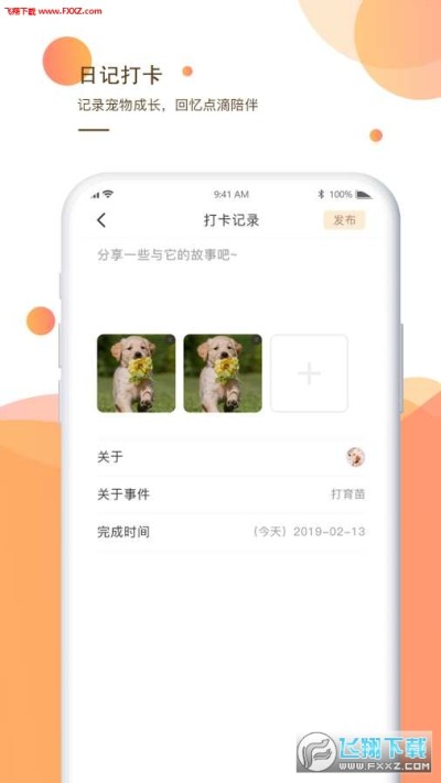 建立你的萌宠专属档案,记录并展示它的生活点滴,帮助你的萌宠更好的生活。