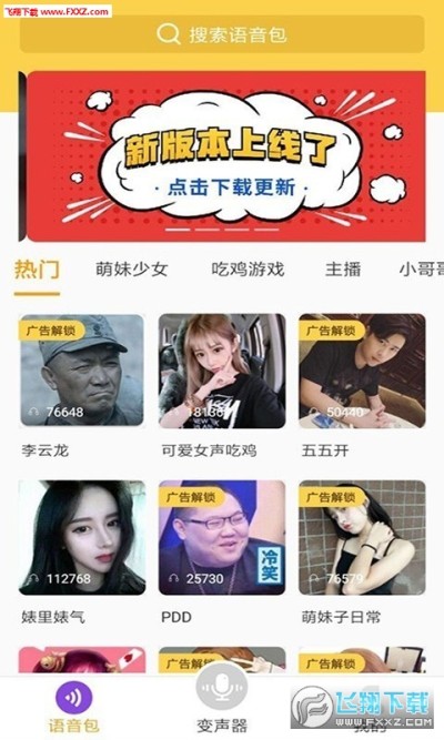 5、多种变声器效果可选:爷爷、大叔、萝莉、小孩、幽灵、机器人等等,使用变声器时只需轻轻一点