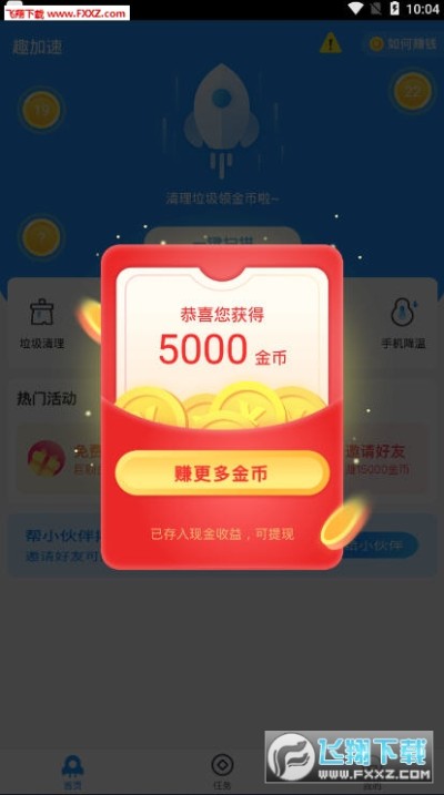 趣加速app是一个手机清理垃圾赚钱的应用,日常清理手机垃圾不仅能让你手机保持清爽,还能赚取金币奖励哦,另外新版本中也为用户带来了更多的玩法,玩游戏赚钱、阅读赚钱,甚至还有红包雨哦,赶快下载趣加速app体验一下吧。