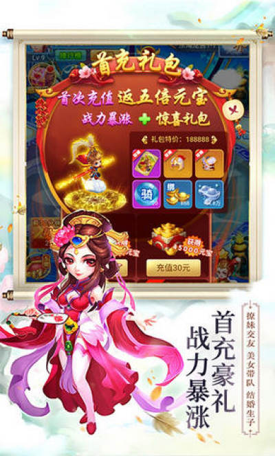 超多福利,玩就送橙色武将:孙悟空、二郎神、小白龙、红孩儿.....极品武将陪你战斗到底!
