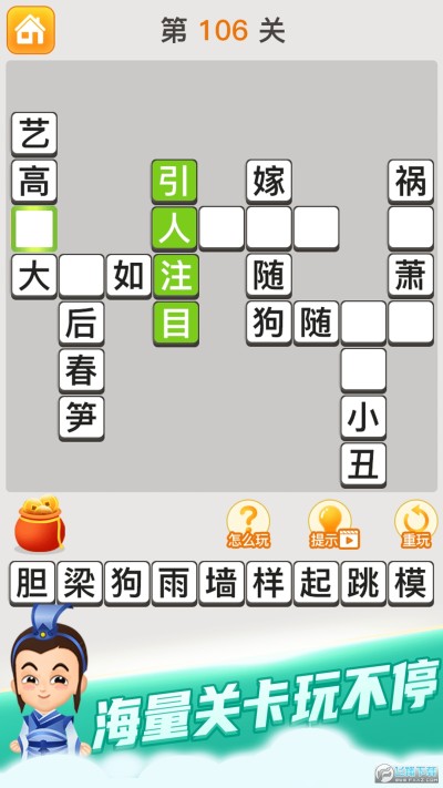 2、玩游戏还能学到知识,成语和填词之间完美的融入融合,让你轻松过关。