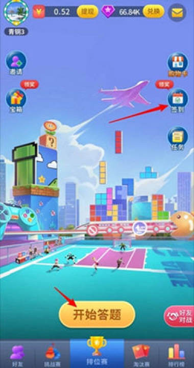 全民爱答题是一个类似最强答人的答题赚钱类活动,里面玩法多样,可以组队PK,也可以个人挑战,赢得胜利后就有机会获得红包奖励。本活动可以靠每天签到赚钱,也可以通过自己的知识去赚钱,看各人喜好。