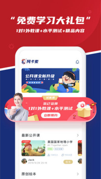 阿卡索英语app是一款为青少年儿童打造的外教英语教学平台,这款软件给各位用户提供一对一的外教在线授课,还有多种不同的学习模式,培养孩子的学习习惯,阿卡索英语app上还有优质的公开课,可以免费学习哦!