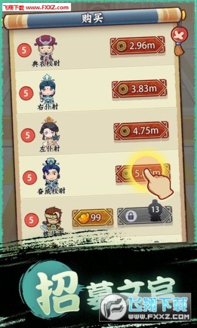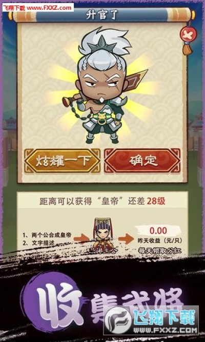 《我要做主公手游》是一款休闲类的游戏,简单的放置挂机玩法,没有复杂的操作,将相同的武将进行合成升级,解锁更多高等级的武将角色,有趣的玩法内容,更多精彩赶快下载吧!