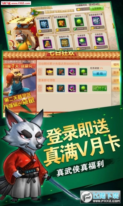 4、任意充值就送价值8888元宝大礼包,紫色英雄牛魔!金币200万,进阶装备套装等等豪华大礼!