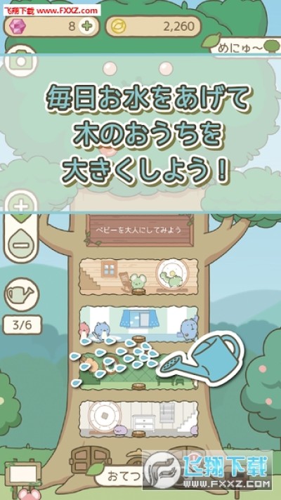 如果您每天都在浇水,树屋将会越来越大,可以为小动物留出更多房间。