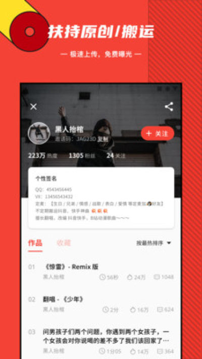 本地音乐/视频轻松上传,抖音快手视频在线提取音乐,专属头衔,超大力度创作者扶持~