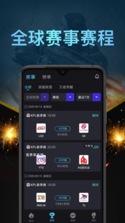 电竞比赛全球赛区赛事,每日实时比分数据。提供lol等热门电竞游戏联赛赛事前瞻数据,对阵历史交锋、赛事直播等精彩内容。