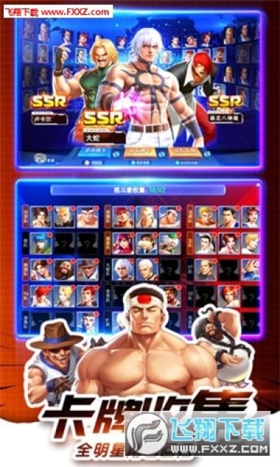 1、所有的拳皇角色都将登场,让你可以自由的选择和培养这些角色,采用卡牌策略战斗的方式;
