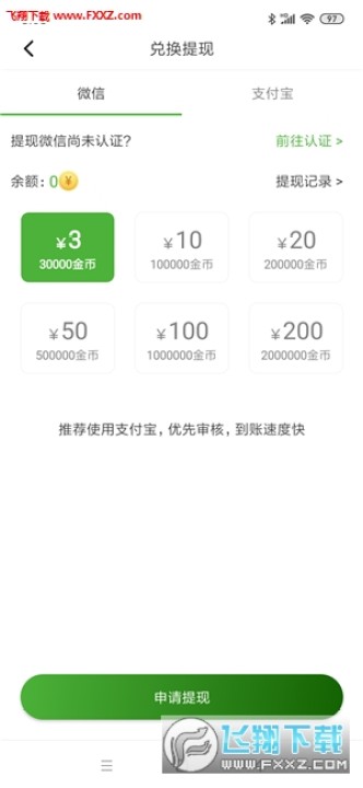 10000金币=1元,微信提现,首次3元提现,后续10元起提,最快当天到账。
