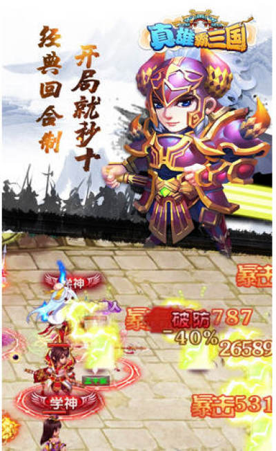 《真雄霸三国》是一款以三国时期为背景的Q版卡牌新作,24小时轻松离线挂机,运筹帷幄之中,决胜千里之外!。 游戏还原三国历史画卷,拥有独树一帜的“冲锋式”战斗模式, 告别传统策略类回合制出手的战斗套路,让战场更加真实!上百种武将各具特点,激萌个性,炫丽技能,让战场更加多变! 游戏更加入了强大的灵宠,为主公守护,全新的挂机玩法,还有更多轻松、有趣、比拼RP的玩法等着你来探索~