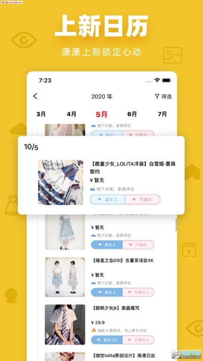 【新品上新】 按上新时间排序,日历清晰明了,JK制服/Lolita/汉服 三坑筛选自如,一键选择喜恶,用真实数据帮你PICK出当之无愧的人气王!