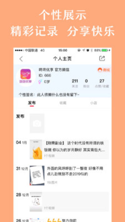 消费者通过平台圈子功能开展社交互动,展现个人魅力,匹配兴趣爱好相同的朋友。打造属于个人的ip成为意见领袖。也可以为商家店铺做推广,享受分享带来的收益。