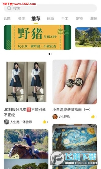 野猪星球app是一款手机兴趣社交平台,这款软件是以兴趣来分类社交的,在野猪星球app上各位用户可以在线跟其他的用户在线交流,也能购买各种优惠商品,查看各种商品测评等等!