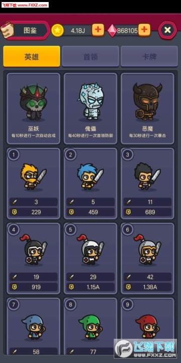 不过英雄初始总是弱小的,通过两两合并,能制造出更强大的英雄。
