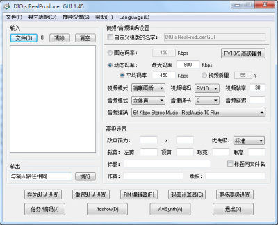 DIOs RealProducer GUI是一款用于RMVB的编辑工具,工具为绿色版本,简单易用,主要功能可帮助用户来进行批量RMVB视频的编辑操作,免去逐个压制的繁琐,非常的实用便捷。