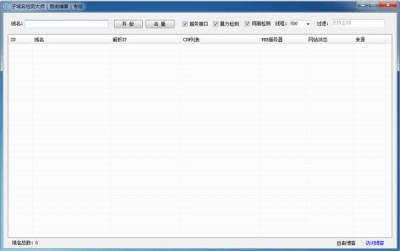 2.软件界面功能:中途停止、重复域名去除、ID显示、域名显示、域名IP显示、CDN显示、WEB服务器显示、网络状态显示、来源显示