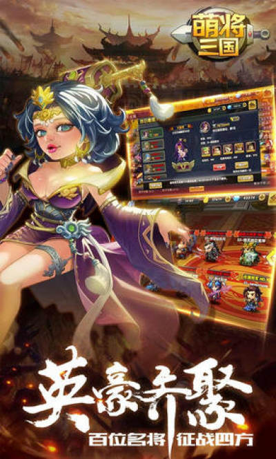 Q版的人物造型,萌态十足,更有红唇皓齿、一笑倾国的美人,为英雄增加属性,助竞技场耀武扬威!200多名传奇历史武将让你尽收帐下。