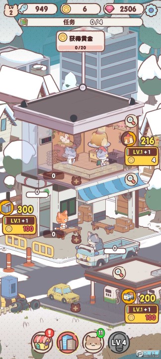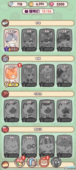 2、每一层都可以建造不同类型的甜品作坊,非常多的猫咪角色可以让你去选择制作各种各样的甜品。