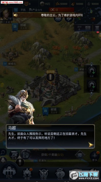 《君临天下》将三国时代完整的地形地貌,以及不同阵营的区域划分悉数还原,游戏内拥有120座城池、36种官阶以及海量三国时代兵器、法宝、名驹等待各位主公前来争夺!