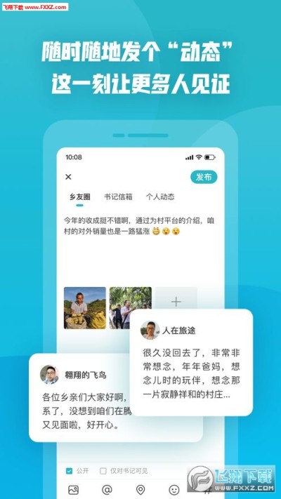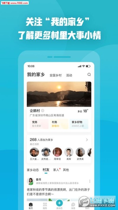 乡村社交:村民能随时随地发布“动态”,分享身边趣事,更能关注“我的家乡”,了解村里大事小情。