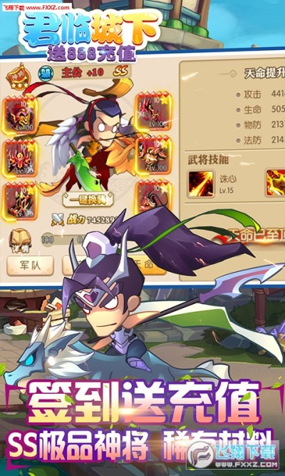 3、充值比例1:1000,首充即送SS神将任选宝箱,关羽,吕布,周瑜,孙坚4选1。
