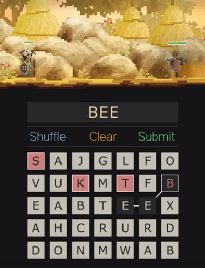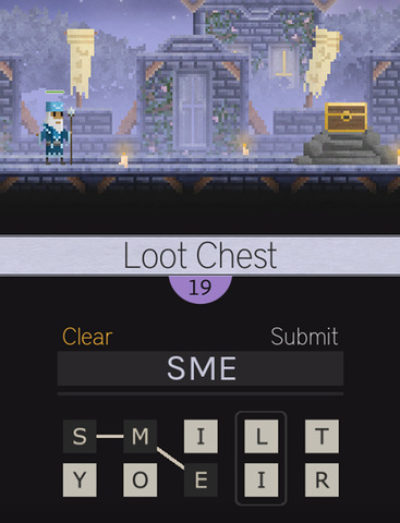 《恶魔之言》是一款带有RPG元素的英文填词游戏,由资深游戏人Dylan Loney为我们带来。游戏中,你可以像常规RPG游戏一样打怪兽、买装备、同关卡、抢宝物,不过这些活动能否顺利实施则取决于你的划线找词能力——在游戏下半部分会有字母格,你需要按给出的单词将字母顺利连线才能发动攻击。