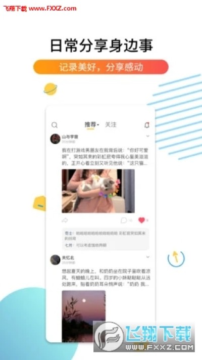1、首页,推荐+关注,分享日常生活点滴趣事,寻找志同道合的人,交流互动。