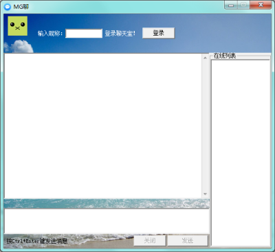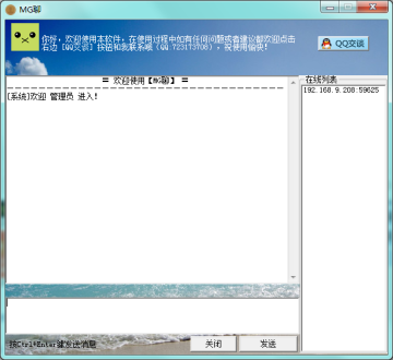 1、下载解压MG聊,在合适的用户电脑下打开服务端,其余的用户电脑上打开聊天端即可