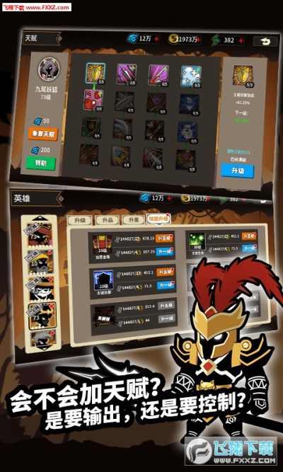 #在队伍页面点击英雄的头像,可以对英雄进行升星和强化。