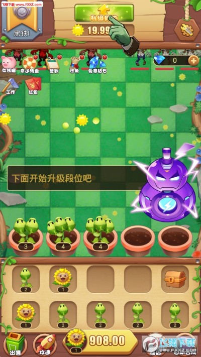 3、僵尸的实力会越来越强,它们的攻击力会提高,你需要升级花草的等级才能抵挡可怕的僵尸。