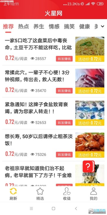 火星网app是今天刚出的转发文章赚钱平台,来自星际联盟旗下,也是该联盟首次推出的转发项目哦,新人注册就送1元现金,活动期间转发单价是0.72元,收徒奖励现金+分成,满5元就能提现啦,赶快下载火星网app转发赚钱吧。