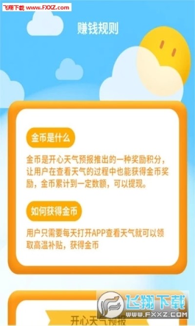金币是开心天气预报推出的一种奖励积分,让用户在查看天气的过程中也能获得金币奖励,金币累计到一定数额,可以提现。