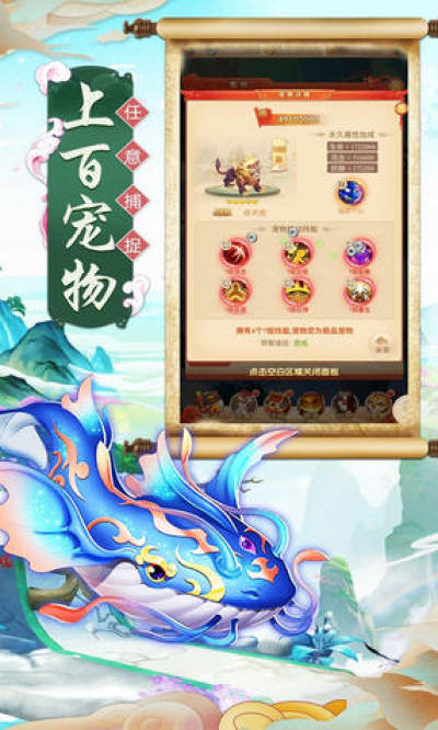 2.可通过消耗道具或元宝对宠物的等级、技能、通灵、兽魂进行提升
