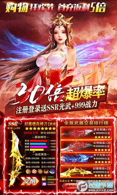 2、超高充值比例1:3000,首充4倍超级返利