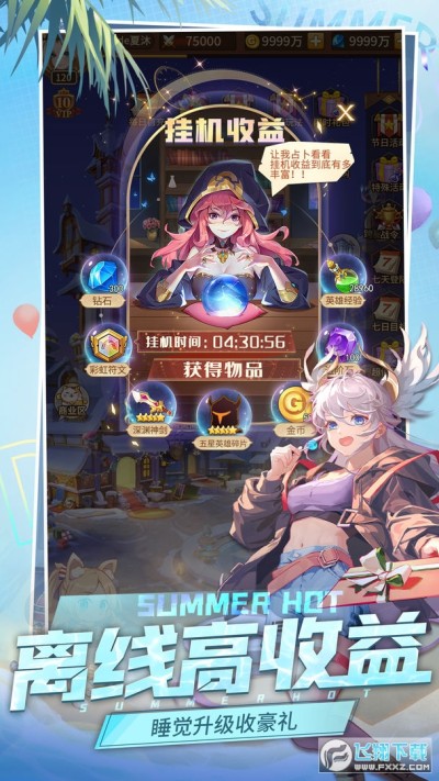 采用5V5放置回合玩法,设定后自动AI战斗,解放双手!哪怕离线状态,也能自动战斗升级获益!装备、金币、经验,还有钻石,稀有高星英雄碎片,让你每天“躺赢”!记得每天领取挂机收益哦。