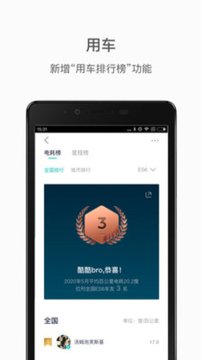 本次上线的“用车排行榜”功能,将与旅程月报一起,为大家提供更多维度的用车数据,大家可以通过“爱车-旅程-排行”进入。