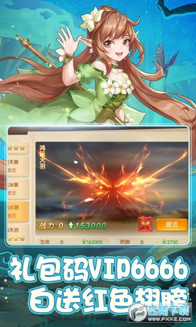 2、输入礼包码:VIP6666,领取红色翅膀幻形“鸿运火羽”
