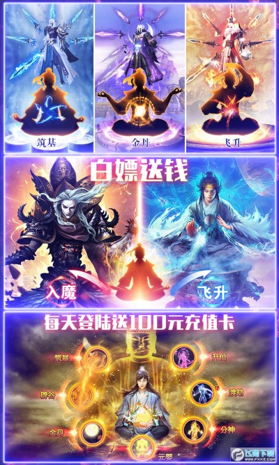 仙宫战纪一天100级福利版是一款国风仙侠题材的ARPG类手游,游戏里上线就送vip特权和充值卡,轻松的放置挂机一天即可满级,免费无限送充值收集神器装备,秒杀BOSS刷爆神装收获海量福利内容,喜欢的小伙伴快来下载体验吧!