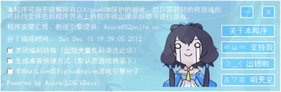 Siglus RealLive引擎通用一键解锁程序此工具支持所有 AlphaROM 理论上受保护的游戏破解,是一款游戏玩家必备的工具。
