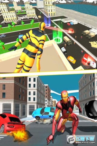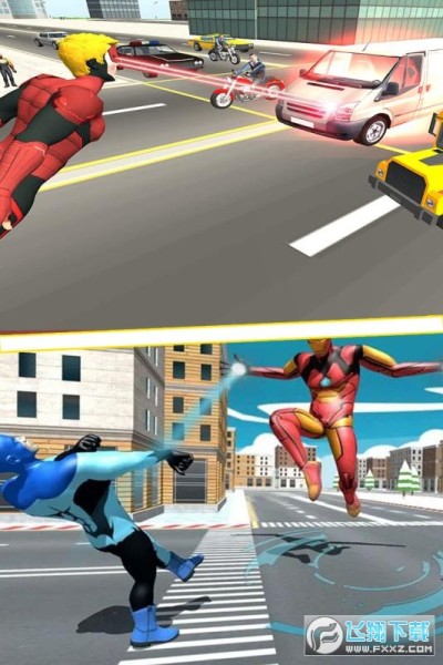 记住不要伤害平民,所以, 要坚强, 追捕罪犯, 救人!《超能飞行队》一款经典城市超级英雄战地模拟器游戏,选择你最喜欢的战斗超级英雄。